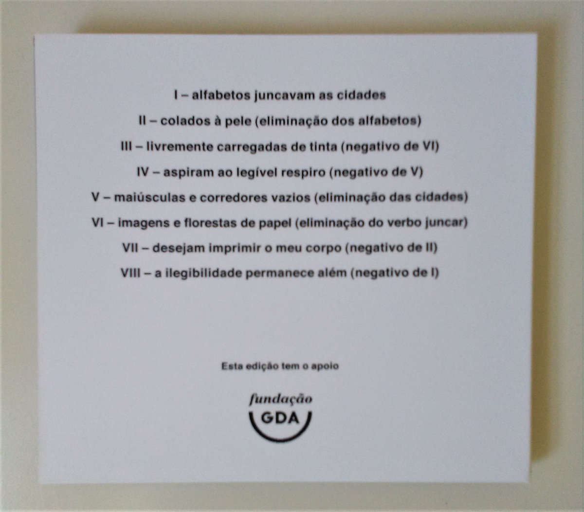 O que dizemos é tanto as palavras que pronunciamos como os silêncios que introduzimos entre elas. Este exercício ocupa-se, em boa medida, desses silêncios. Pretende averiguar o que sucede quando suprimimos determinadas parcelas de um texto que se diz e as substituímos por blocos de silêncio, ou seja, quando aumentamos o silêncio entre as palavras que pronunciamos. Quando se opta por não pronunciar certas palavras, que consequências resultam para o texto de onde as suprimimos, assim como para o que fica dito e para o que fica por dizer?